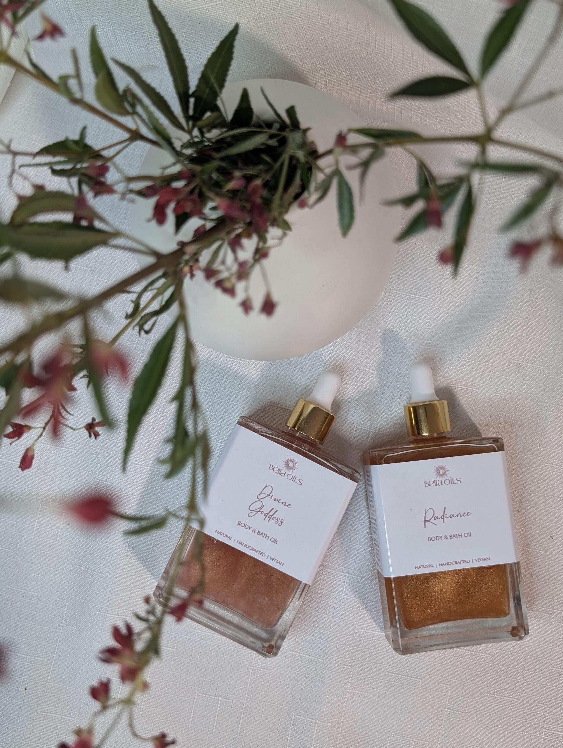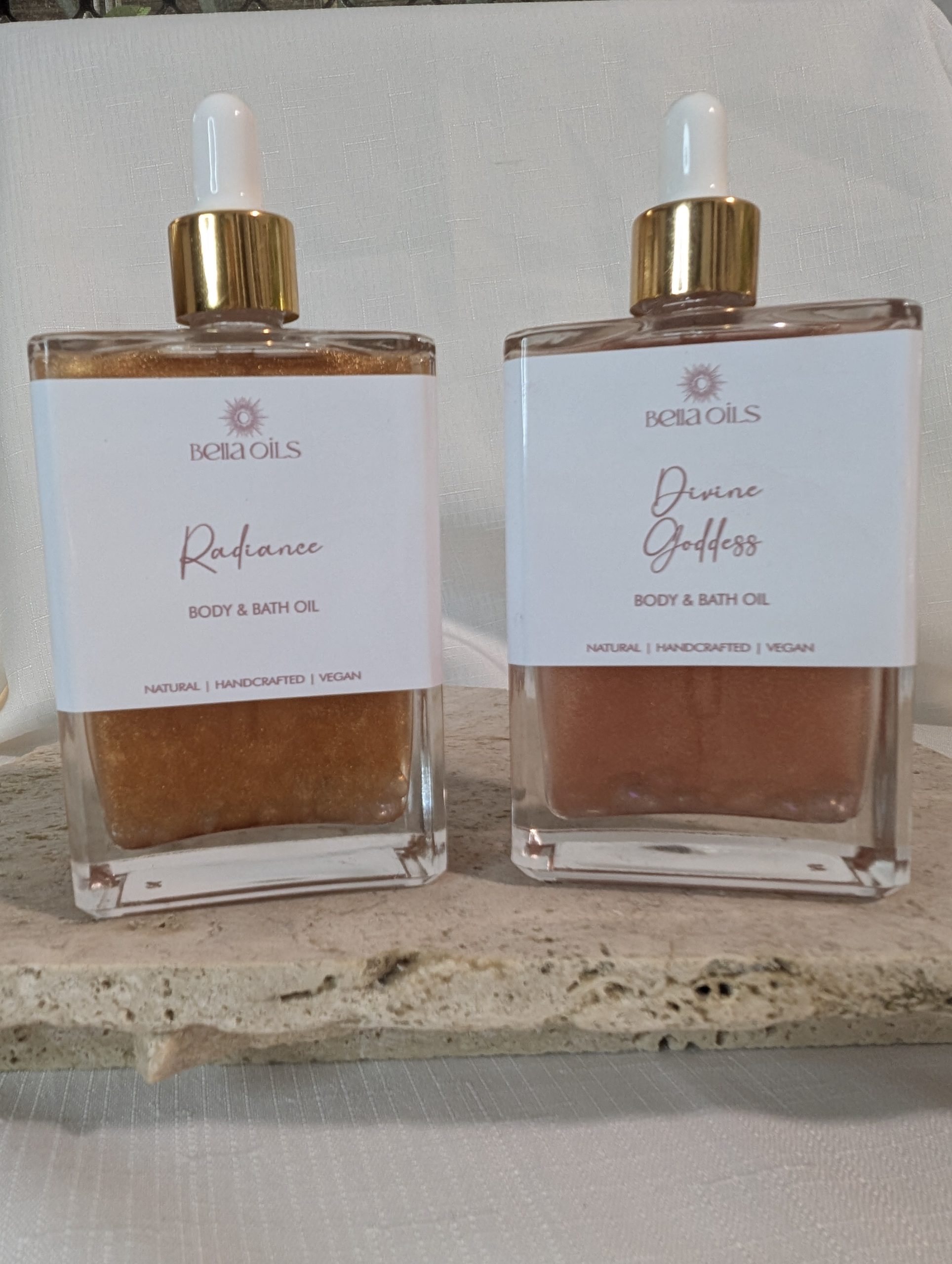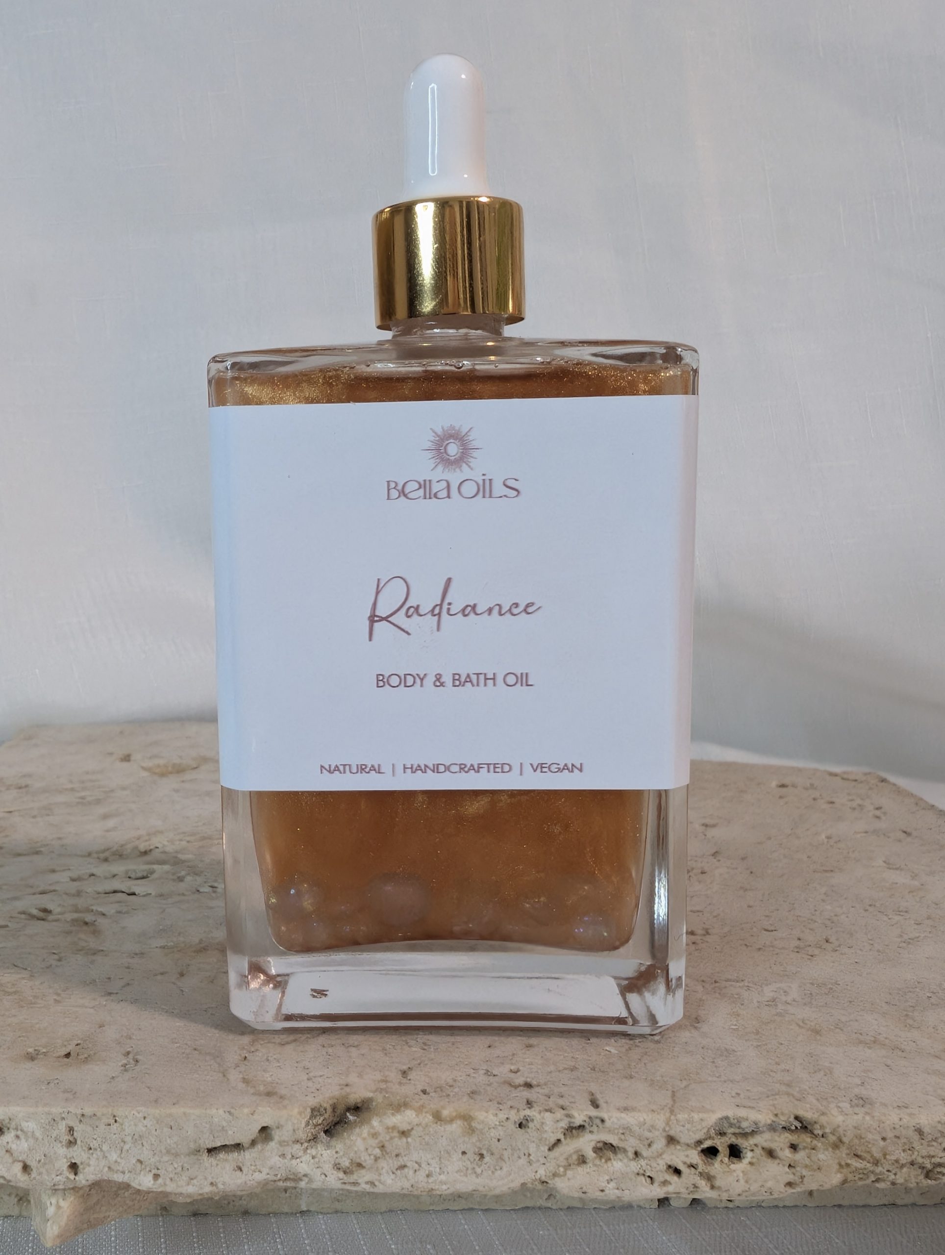 Illuminate your skin with our Radiant Summer Body Oil, a limited-edition Luxury Body Oil handmade in small batches. This delicious light, fast-absorbing oil leaves a subtle bronzed shimmer that hydrates and enhances your natural glow, without any greasy residue.